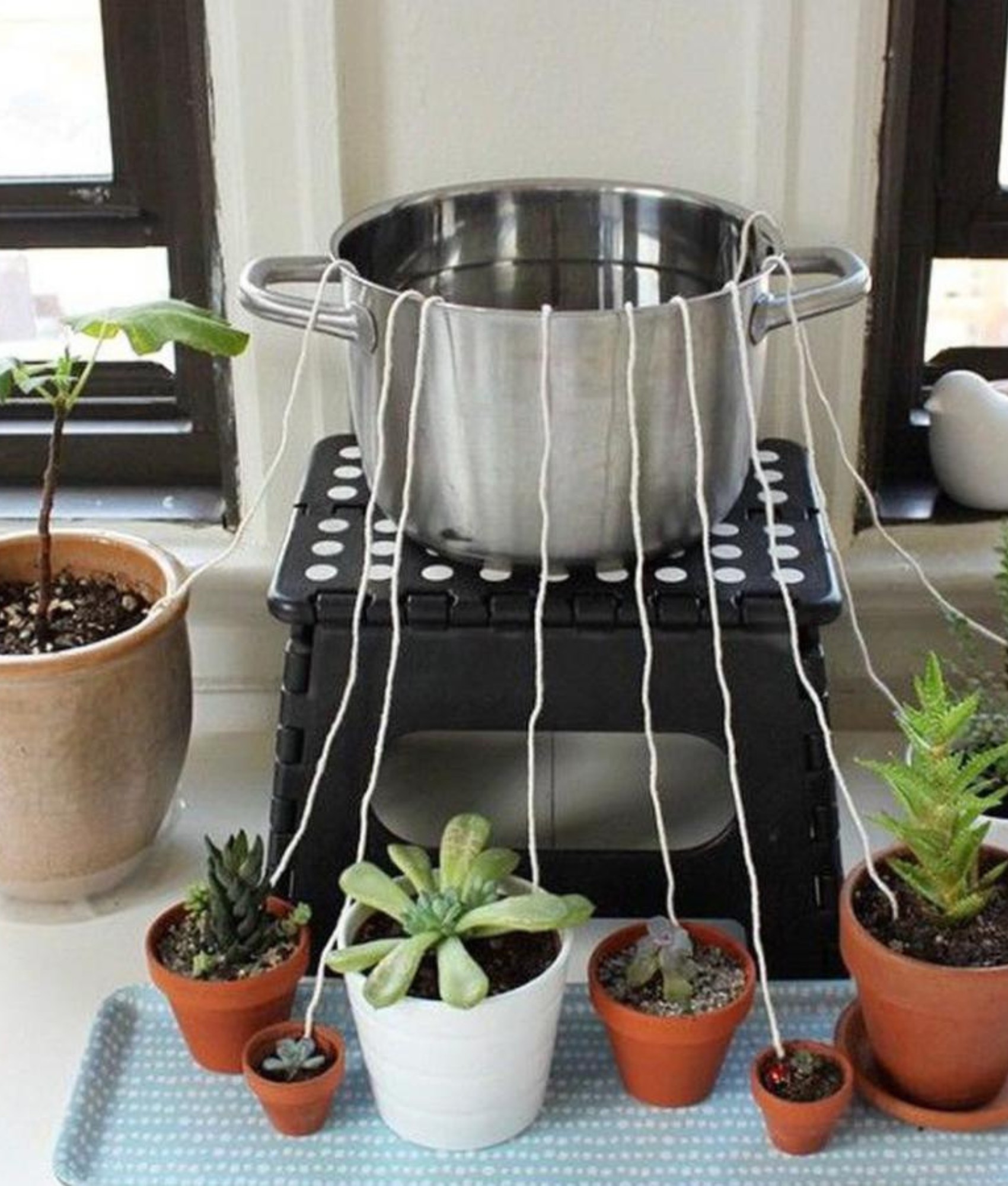 Met een eenvoudig touw kunt u uw planten gehydrateerd houden zonder dat u extra ruimte in de grond nodig hebt.
