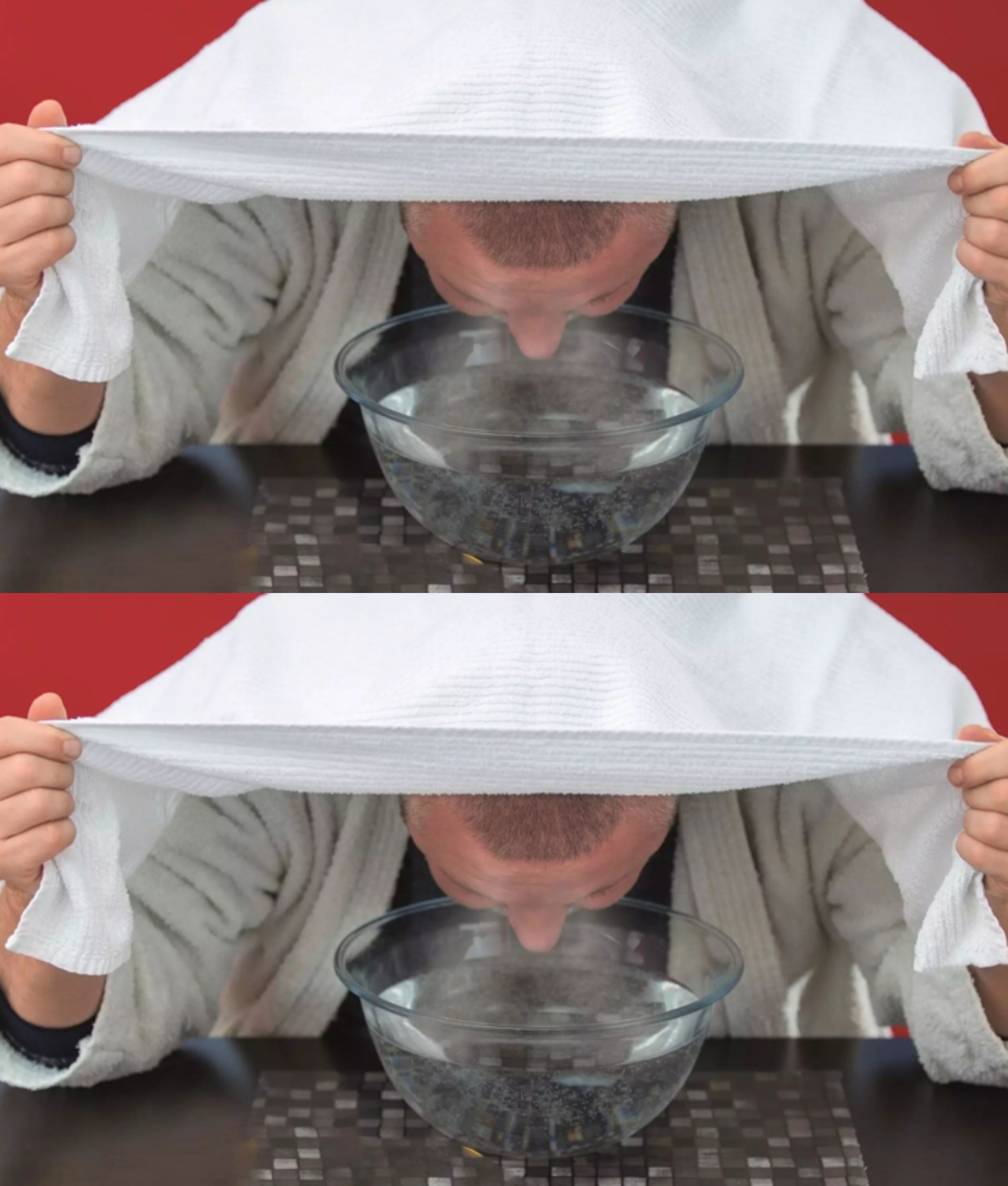Stoomtherapie is een geweldige manier om de luchtwegen te openen en de ophoping van gifstoffen en slijm in de longen te verwijderen. Vul een kom met heet water, buig u eroverheen, leg een handdoek op uw hoofd en inhaleer de stoom een ​​paar minuten lang diep. Voor een extra boost kunt u een paar druppels eucalyptus- of pepermuntolie aan het water toevoegen, vanwege de natuurlijke ontstekingsremmende eigenschappen.