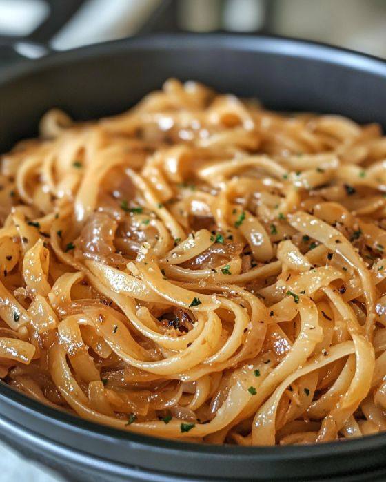 Gekarameliseerde uien voegen een rijke diepte van smaak toe aan elk gerecht, en wanneer ze langzaam worden gekookt, worden ze heerlijk zoet en mals. Deze Slow Cooker Caramelized Onions Pasta is een troostend gerecht dat de eenvoudige elegantie van gekarameliseerde uien combineert met uw favoriete soort pasta. Dit recept, dat zijn oorsprong vindt in Italiaanse culinaire tradities, waar eenvoud de sleutel is, is perfect voor iedereen die een gerecht wil maken dat zowel bevredigend is als barst van hartige-zoete smaken. Het is ook een geweldige manier om gebruik te maken van een slowcooker, die de arbeid uit het karamelliseren van grote hoeveelheden uien haalt.