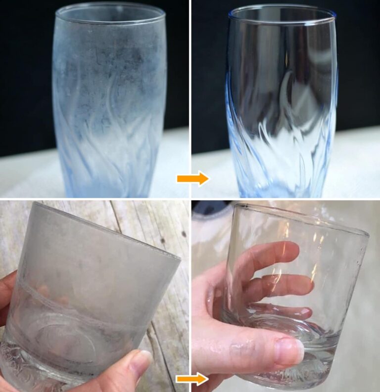 Dit soort vlekken ontstaan op glazen, vooral als we ze in de vaatwasser wassen, vanwege de kalk in het water. Te veel wasmiddel kan vlekken erger maken.