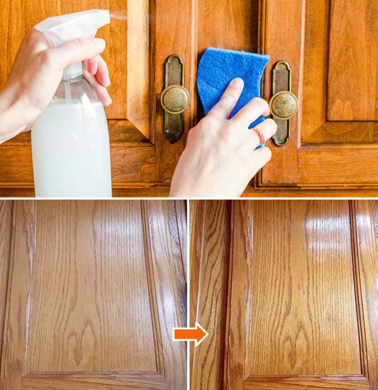 Vetophoping op keukenkastjes is normaal en gebruikelijk, maar toch denken we er zelden aan om ze schoon te maken. Doordat het vet dat zich op de kasten ophoopt plakkerig wordt, blijft er stof en ander vuil achter, waardoor de kasten dof worden.