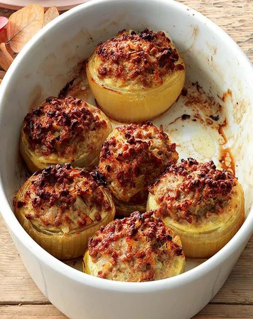 Voor het recept met gevulde uien: schil de uien en kook ze in hun geheel in kokend, gezouten en pittig water met een beetje azijn, gedurende 30 tot 35 minuten.
