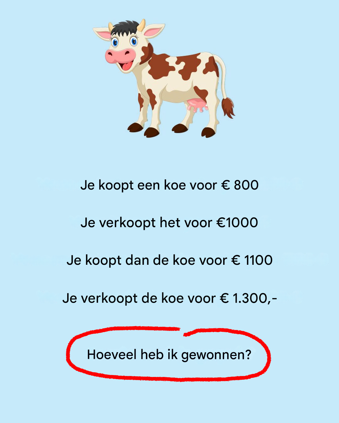 Een koe, transacties en getallen die met elkaar verweven zijn… Deze wiskundige puzzel heeft duizenden internetgebruikers uitgedaagd. De oplossing is echter eenvoudig als u de stappen methodisch volgt. Kunt u de totale winst berekenen?
