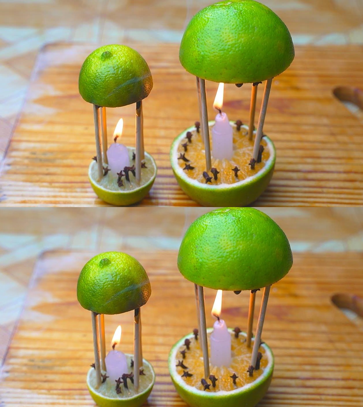 Het is tijd om de kaars aan te steken en van de voorstelling te genieten. Wanneer citroenpulp en kruidnagels worden verwarmd, verspreiden deze kleine natuurlijke lantaarns een heerlijke geur door het hele huis. Bovendien vinden de meeste insecten deze geur niet prettig. Dit betekent dat muggen binnen enkele seconden op de vlucht slaan, geïrriteerd door de geur die vrijkomt.