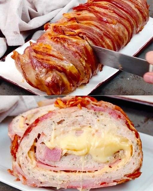 Verdeel het gehaktmengsel over plasticfolie, zodat er een rechthoek ontstaat van 30 × 40 cm.