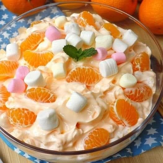 Dit eenvoudige recept voor sinaasappel-roomsalade combineert zoete, zure en romige smaken voor het perfecte fruitige en verfrissende bijgerecht of dessert.