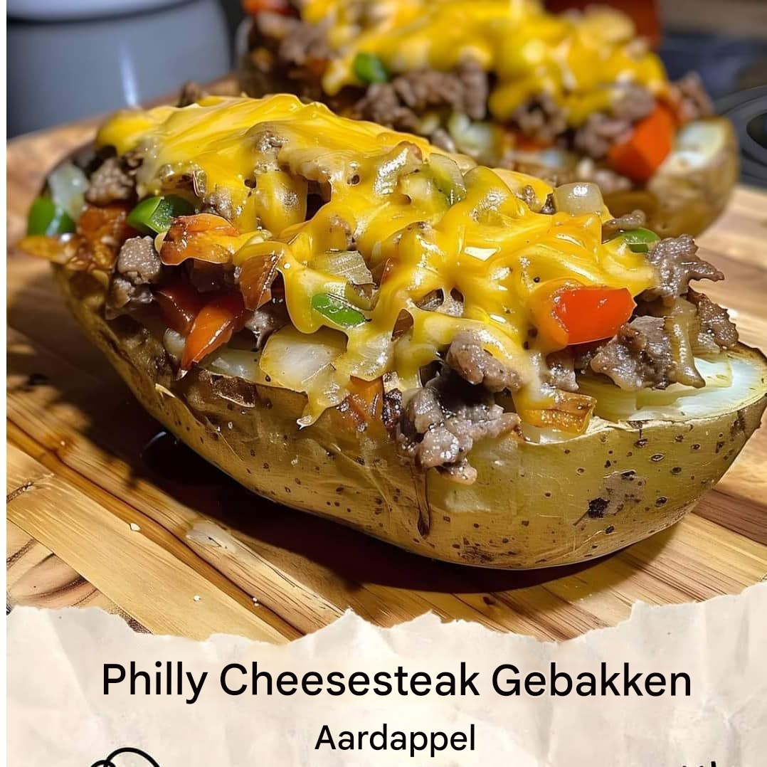 Philly Cheesesteak Baked Potatoes combineren de hartige smaken van een klassieke Philly cheesesteak met de troostende textuur van een gebakken aardappel. Dit recept is perfect voor een stevig diner of een bevredigende lunch, waarbij gekruid rundvlees, gebakken groenten en gesmolten kaas worden gecombineerd op een perfect gebakken aardappel.