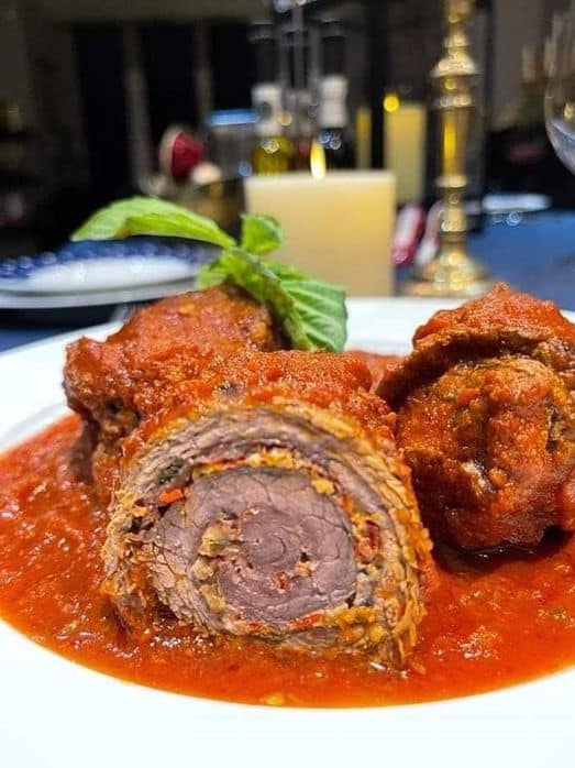 Beef Braciole is een heerlijk en hartig gerecht dat de troostende smaken van de Italiaanse keuken naar uw tafel brengt. Dit recept, met zijn malse rundvlees en rijke tomatensaus, is perfect voor familiediners of speciale gelegenheden. Serveer het over pasta of met knapperig brood om de smaakvolle saus op te nemen. Geniet van de smaak van Italië met deze bevredigende maaltijd!