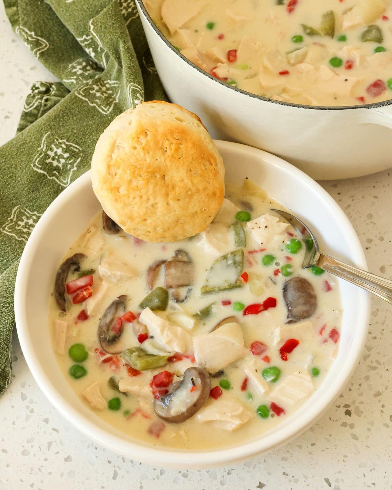 Deze romige kip-groentesoep is een troostend en hartig gerecht dat perfect is voor koude dagen. Met malse kip, kleurrijke groenten en een rijke, smaakvolle bouillon is dit een eenpansgerecht waar het hele gezin van zal smullen. Serveer het met een koekje of knapperig brood om elke heerlijke druppel op te zuigen.