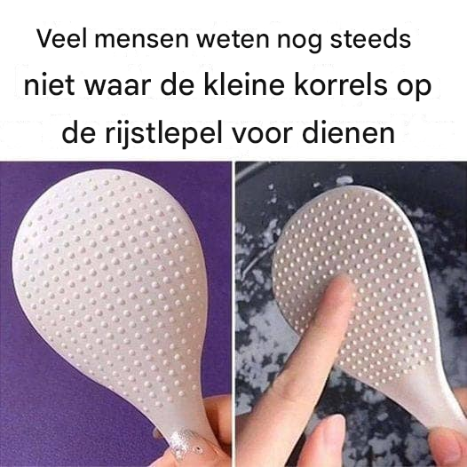Kunt u zien waar de kleine puntjes op de pollepel voor zijn? Is het om te voorkomen dat de rijst blijft plakken als u roert? Als u dat denkt, dan heeft u het helemaal mis; de waarheid zal u achterover laten vallen.
