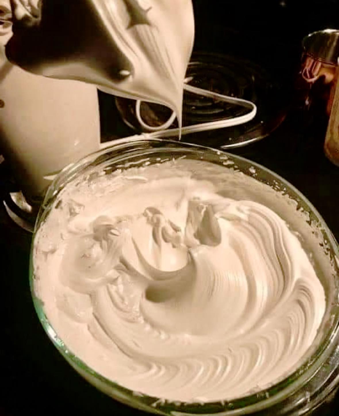 - Klop het mengsel 6-8 minuten lang tot het dik en luchtig is.