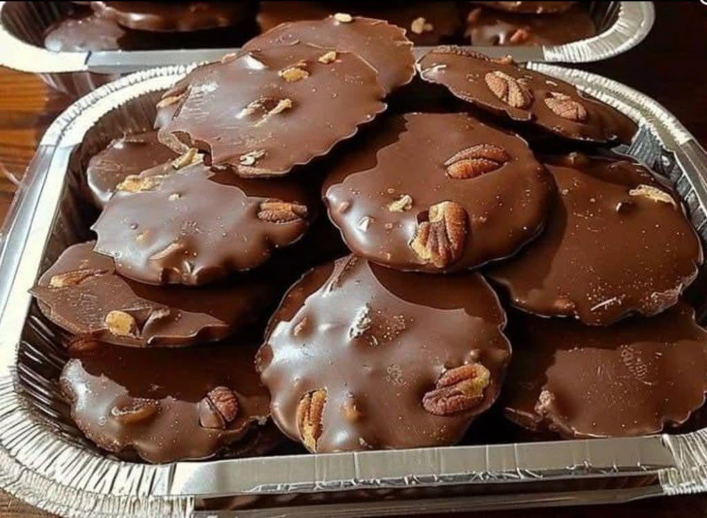 Leg groepjes van vier pecannoten op een bakplaat bekleed met bakpapier of een siliconenmat. Elke groep moet op een viervoetige schildpad lijken. Deze stap zorgt ervoor dat de pecannoten gelijkmatig verdeeld worden en klaar zijn om de karamel en chocolade te ondersteunen.